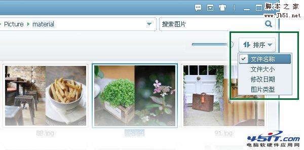 2. 美图看看管理界面空白处点击鼠标右键菜单中的第一项排序方式对其排序进行设置,默认按照文件名称排列。