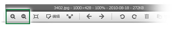 看图窗口工具栏上的放大镜的按钮,就是缩放功能,点“+”放大图片,点“-”缩小图片。