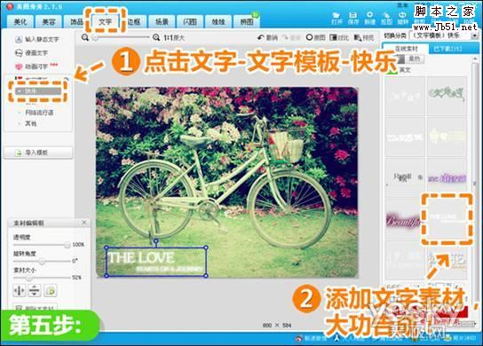 5、最后点击“文字标签”,选择“文字模板?快乐”,添加相应的文字素材即可。