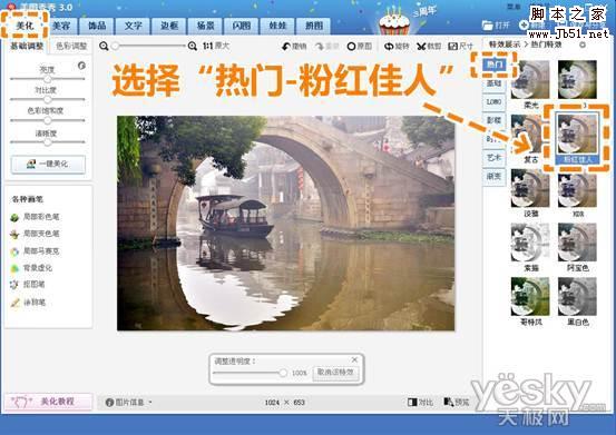 3、然后选择“热门-粉红佳人”特效,让照片色调更清新。