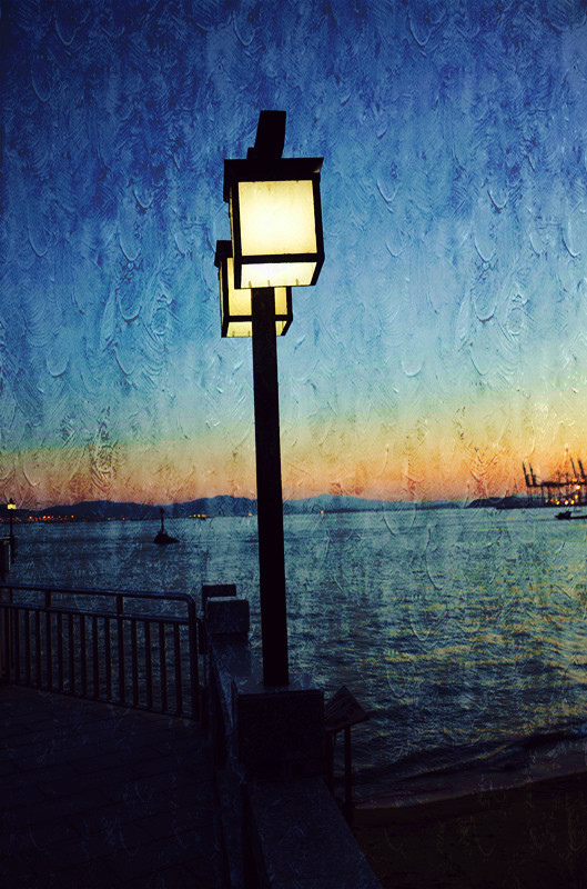 很普通的一张夜灯照片变身油画风格后,是不是更有意境?快来看看如何制作吧: