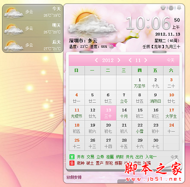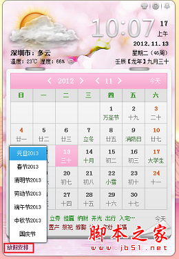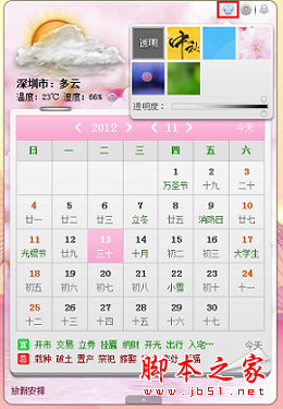https://www.jb51.net/softs/63574.html,点开右上角的换肤按钮,淡雅的粉,清新的绿,明亮的黄,开阔的蓝......一样的人生日历,不一样的色彩和感觉,让你的心情随着色彩马上灿烂起来。
