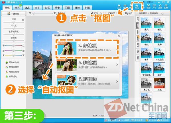 3、然后准备制作倒影,点击“抠图”,选择“自动抠图”。