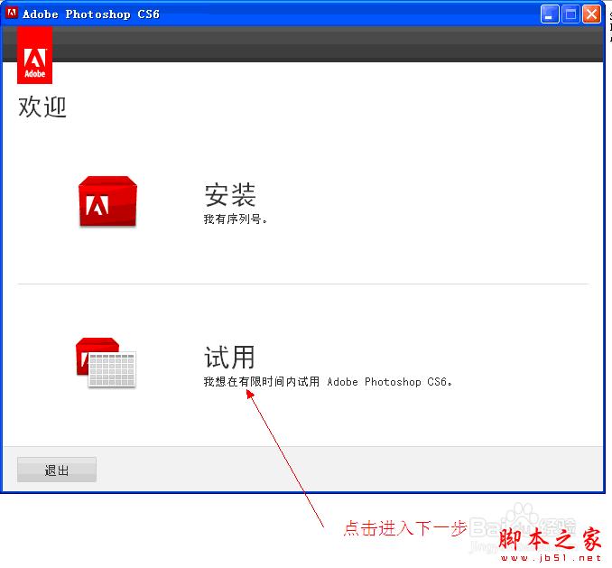 等待欢迎界面出来后,选择【试用】。(这点很重要,别点错了哦 )