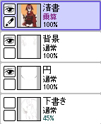 单元格2的大致情况。从这儿开始的上色,就要把画线单元格和上色单元格合在一起了。最初从人物开始上色,所以先把人物的画线单元格合并。