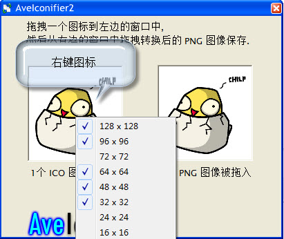 2.拖入后,软件会自动转换为ico,转换成功后可右键选择图标尺寸。
