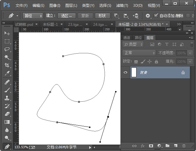 使用绘画工具(如画笔、铅笔、橡皮、加深减淡工具等等),按住Shift键单击鼠标,可将两次单击点以直线连接。