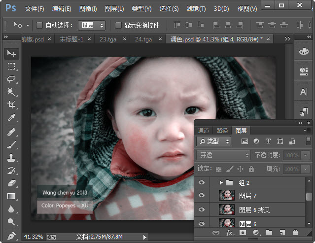 12. 按住Alt点击所需层前眼睛图标可隐藏/显现其它所有图层。