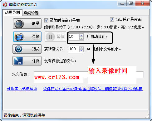 2 点击录像,自动开始录像,我们只需要输入录制时间即可