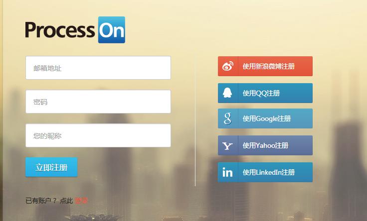 使用ProcessOn需要有一个帐号,ps:当然不注册也是可以的,试用点这里(试用)