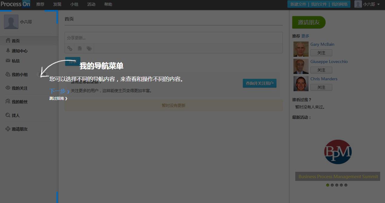 这是第一次使用ProcessOn的新手引导指南,当然也是可以跳过,还是建议学习一下。