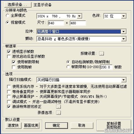 纹理过滤:不同的游戏常常会改变此项来达到满意的效果,游戏中可以按Delete键调出菜单,用Home,End,Page Up,Page Down来调整以达到最佳效果