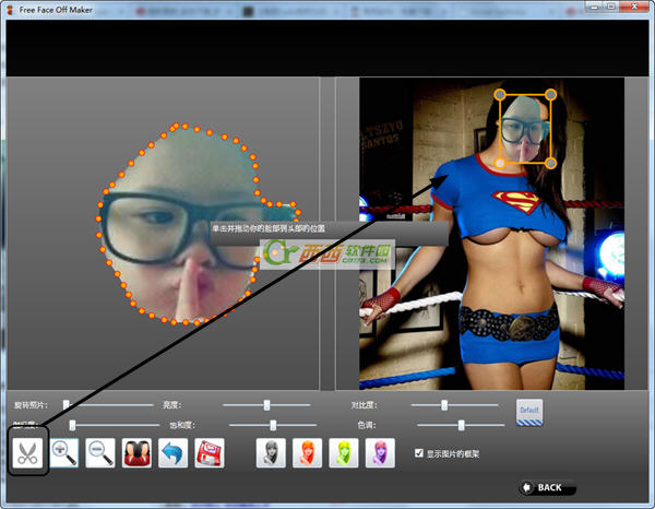 Free Face Off Maker会提供用户一些很多有趣的背景人物图片。我们只需要双击图片下载即可 进行下一步。