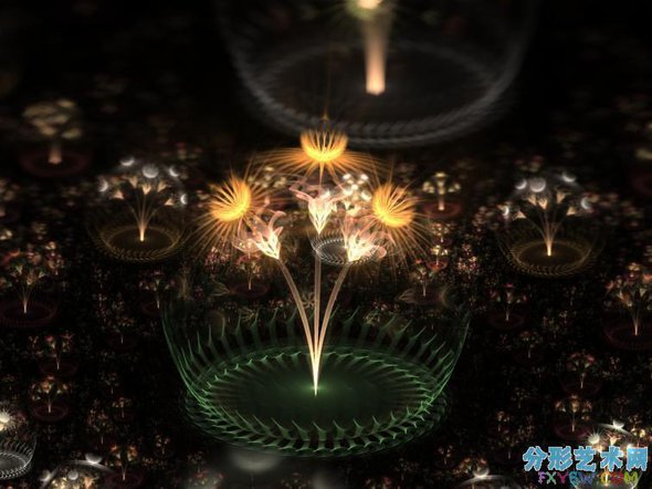apophysis默认会生成100个分形图。这些分形图都很漂亮,每次打开软件都会生成不同的图形,由于分形的性质,一点点改变都会发成巨大的改变,所以不需要担心有随机生成的重复率。我们可以从中挑选好看的分形图作为高光的滤图。下面我们再稍微学一下软件的控制,让出现的图形更丰富。