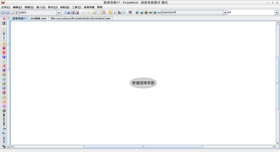打开freemind的时侯的初始界面如下图: