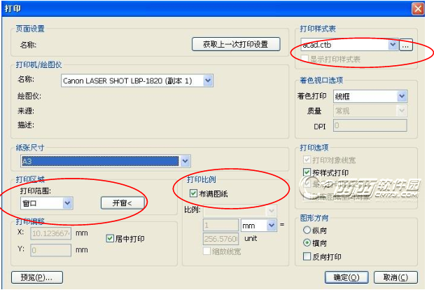 先打开页面设置对话框,在指定打印机栏里选择你已安装的打印机,选择纸张型号,设置视口,OK。