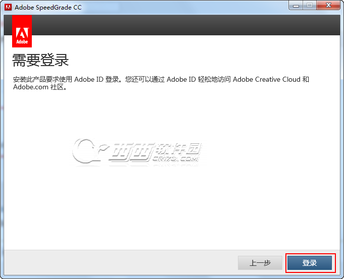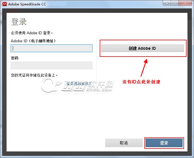 4、此步需要登录刚才我们创建的Adobe ID,如果之前没有创建ID的则可以在点击登录后的页面中创建。