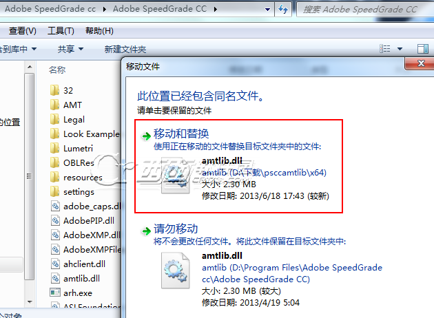 2、找到自己的SpeedGrade cc安装目录amtlib.dll文件的存放位置,若是默认安装则在C盘programfile里面。