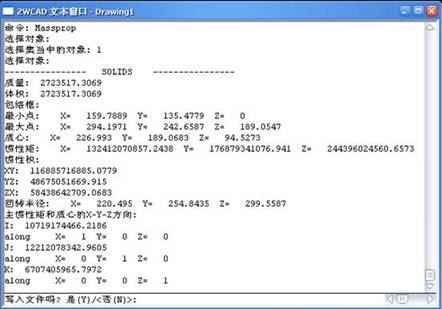 中望CAD还允许用户将MASSPROP命令的查询结果写入到文本文件中,显示查询结果的最后系统将给出提示: