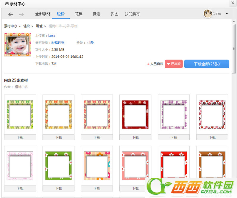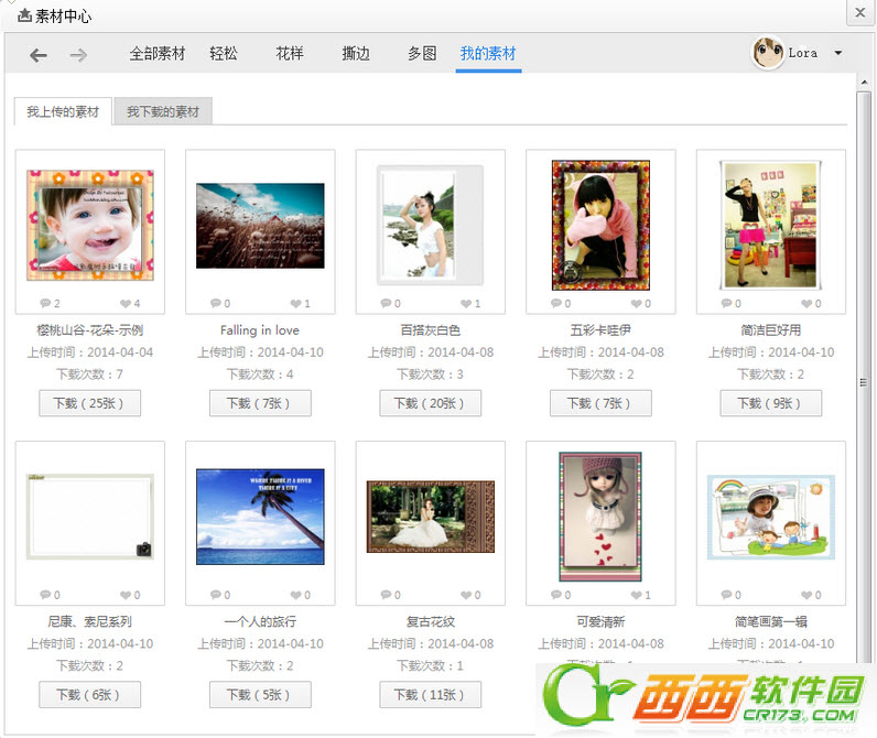 素材下载: 素材会自动下载到相应的分类下,下载完成后可直接在边框中使用,无须再导入,非常方便