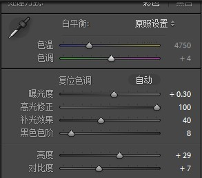 为了要达到泛白点的效果,加上前期画面有点暗,于是我就稍微加了一点曝光,其次就是尽其所能地压高光,我觉得日系的一些很白很白的照片不是过曝,而是在逆光的基础上压了高光,不至于让白色的部分变成所谓的“死白”。这两天我的LR出了点问题,本来有个暗部的按钮不知道跑到哪儿去了,如果各位看到的话,不妨拉一拉那个条条。