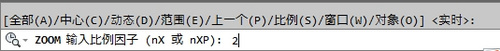 单击该按钮后,在命令行输入要缩放的比例后按空格键即可实现比例缩放。如输入2X