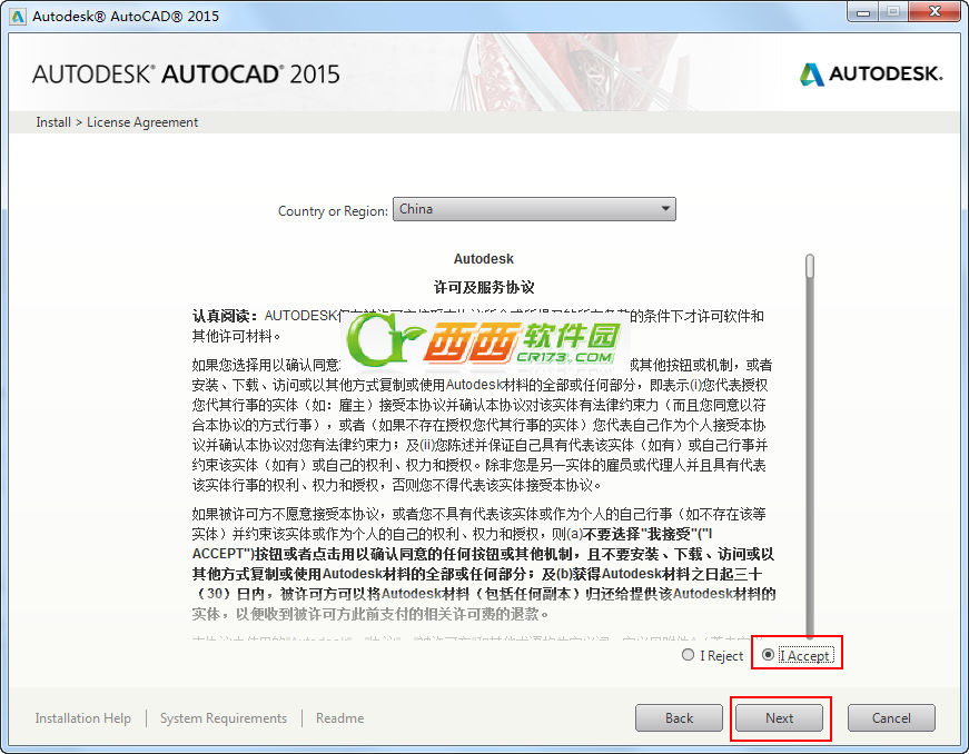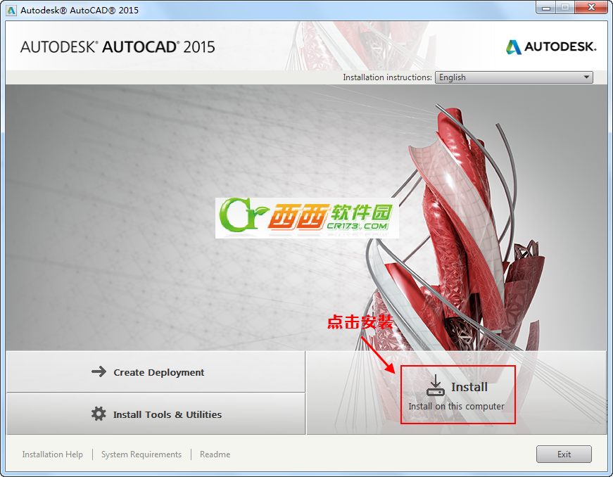解压完毕后在解压的文件夹中找到“setup.exe”,双击开始安装Autocad2015。