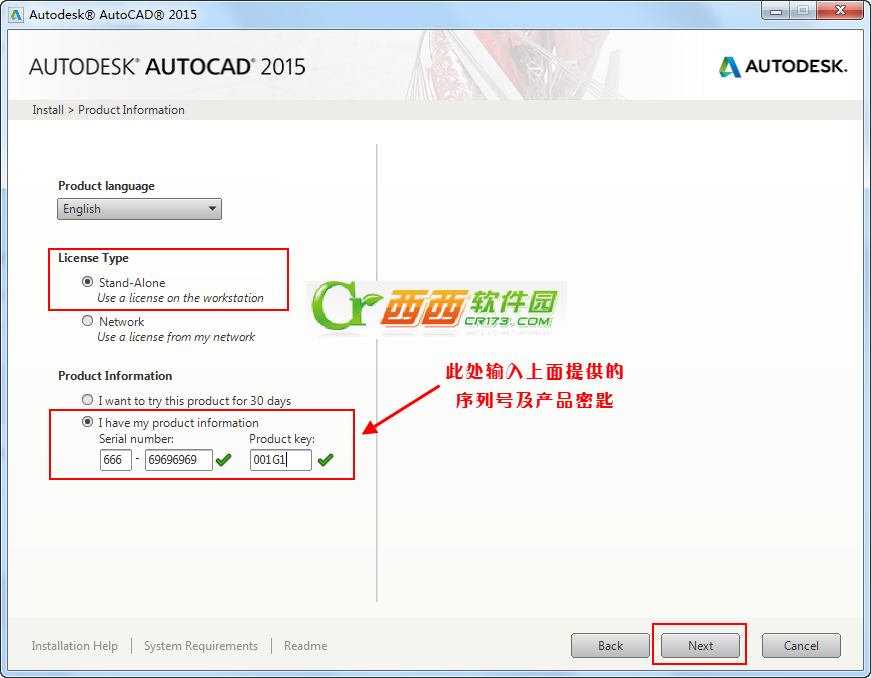 4、选择许可证类型并输入产品信息,输入上面给大家提供的序列号及产品密匙