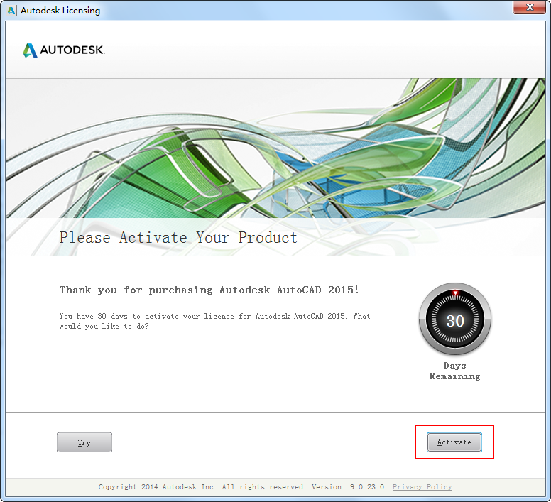 这时我们看到了“Autodesk 许可”对话框,选择激活选项,如图所示: