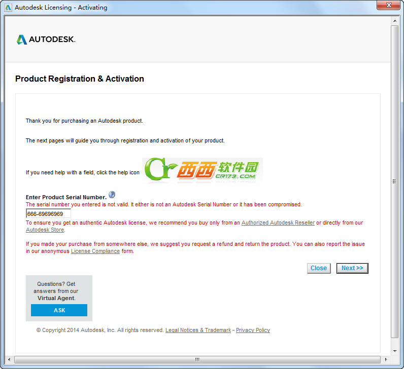 注意:若点击激活后出现序列号无效,则关闭等一会再点击激活即可。