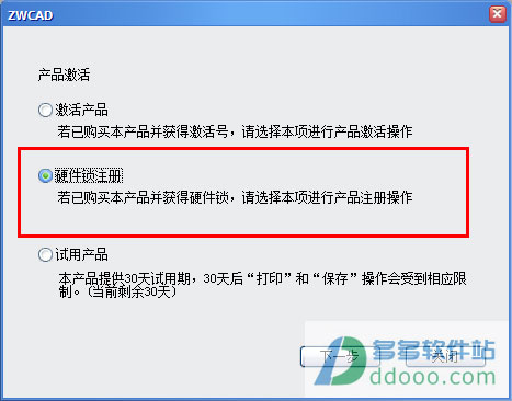 4、选择“硬件锁注册”,进入下一步骤;