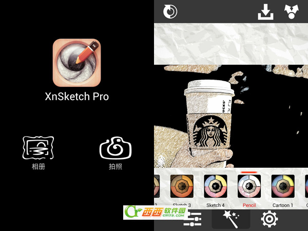 要使用这款软件,用户下载“素描滤镜”的软件。下载并安装后,打开软件。打开软件后,用户可以在相册中选择或者拍照。在素描滤镜中添加了照片后,在底部选择“魔法棒”的按钮,用户就可以选择不同的素描滤镜效果。