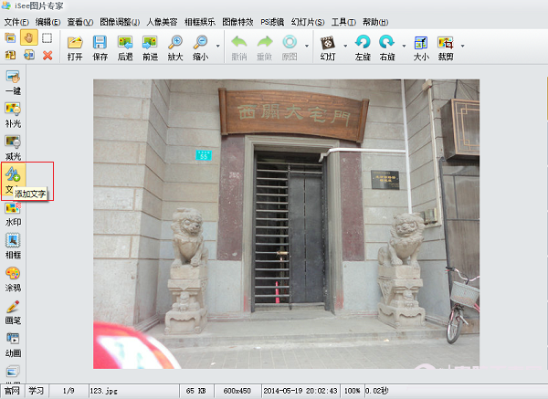 第一步:选择你要添加日期的相片用ISEE图片专家打开,点击“文字”。