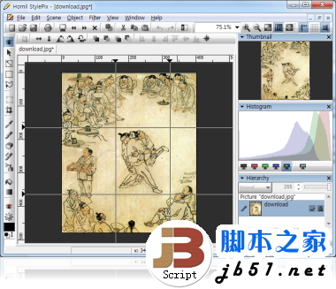 放大/缩小和全屏幕视图和指南,尺子,电网的支持。标尺,网格和引导帮助您编辑。你可以显示/隐藏这些你需要的。缩略图,直方图和电流波形编辑图像的看法。