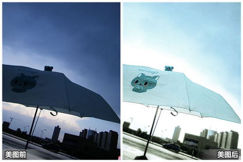 图片整体的亮度有提升,淡淡的青蓝色清爽且意境十足,原来无法分辨的伞上小猫图案,现在也能清晰地看到,真的焕发了新光彩。接下来看看是如何修复的吧: