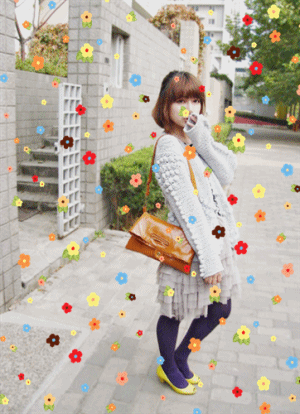 1.多色碎花飘落。Yummy个人最喜欢这个效果了,让照片显得特别优雅、恬静,如果天上真下起了花雨,该是多么浪漫啊!嘿嘿!