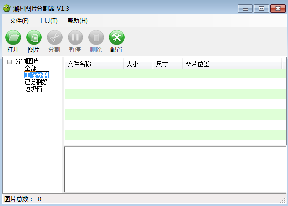 潮村批量图片分割器是一款绿色免费的图片批量分割器,可以将一些大的图片分割成几个小块,方便用于移动设备上的浏览,也可以将一张完整的图片分割成好几小块用于现在比较流行的照片墙使用。应用到的地方还是很多的。