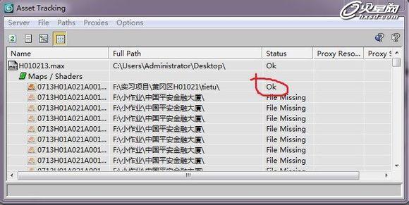 红圈圈住的位置就是贴图丢失的意思,如果没有丢失则是OK或者found