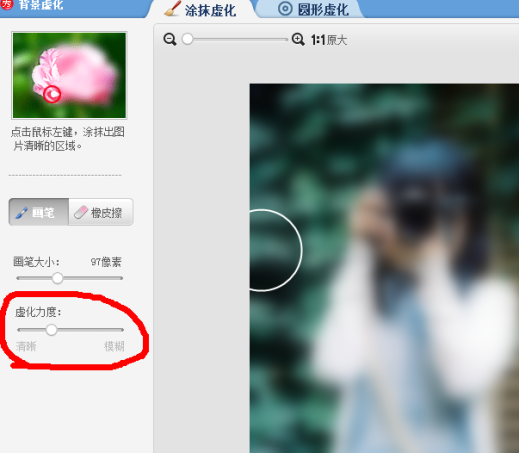 小编个人觉得系统默认的虚化力度有点大,小伙伴们稍微调小一些就可以了,调到你觉得合适的地方,点击确定。