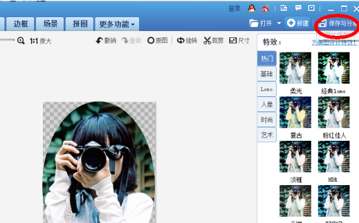 形状也是可以调的,你可以裁成圆形也可以裁成椭圆,自己可试一下。完成裁剪之后保存。