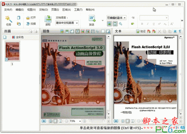 7、在选项设置窗口中,有两项设置是比较重要的。首先是文档的语言,如果jpg图像中含有大量的文字,那么就根据这些文字选择正确的文字类型,比如简体中文(这个设置对jpg转pdf没有影响,但对jpg转word很大影响)。然后是色彩模式,选择“全彩色”效果比较好,但处理速度稍慢,设置完成点击“确定”
