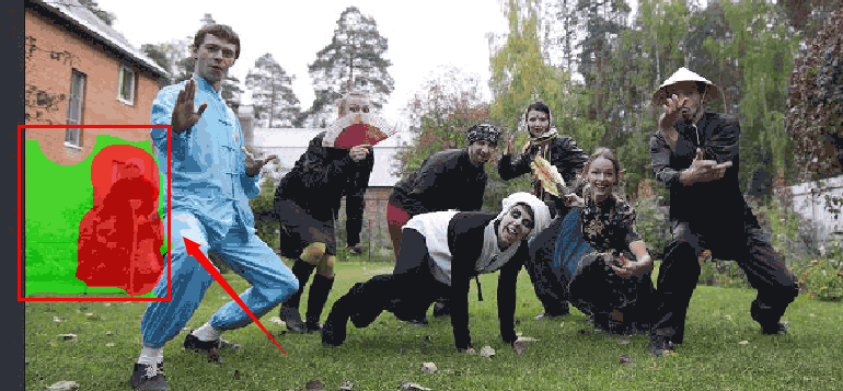 选择自己需要删掉的人物图像,继续点击工具栏中的“笔刷”选中需要去除的部分,方法和去除水印的方法一样的!