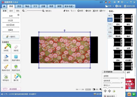 4.把中间部分用一张白色图片盖住,鼠标右键添加图片,添加白色图片,最好先把那两个字合并了,然后再合并白色图片。(白色素材以及印花素材的图片在最下方便可看到)