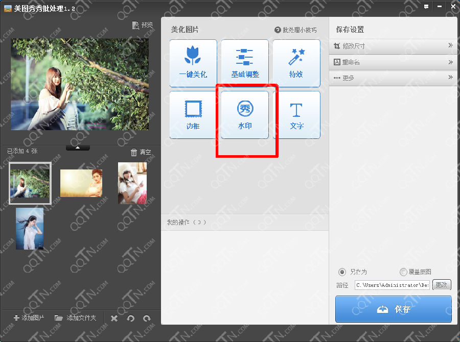 3、进入到美图秀秀批处理主界面之后,功能一目了然。