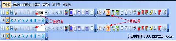 4、擦除多余部分,选择擦除工具,在图片上按住鼠标左键不放拖动来擦除多余的部分,如果你在擦除过程中有某一次擦除错误,可以通过“撤消”来回复到上次擦除以前的图象。