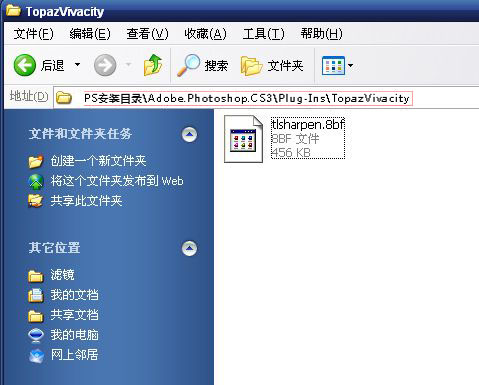 3、将tlsharpen.8bf文件直接放入你的PhotoShop安装文件夹中的滤镜(Plug-Ins)目录中。比方说我的Photoshop安装在D盘。安装路径则为D:\Program Files\Adobe\Adobe photoshop cs5\Plug-Ins。