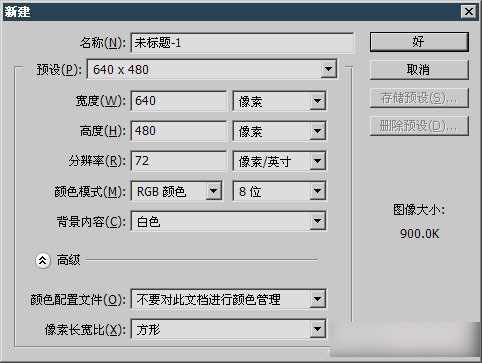 这里先简单为大家介绍下PS新建画布的几个预设图像大小,在预设中,可以选择A4、A3或其他和打印有关的预设,高宽会转为厘米,打印分辨率会自动设为300。如果选择640×480这类的预设,分辨率则为72,高宽单位是像素。宽度和高度可以自行填入数字,但在填入前应先注意单位的选择是否正确。避免把640像素输入成640厘米之类。分辨率一般应为“像素/英寸”为准。