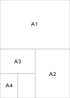A4就是一种纸张规格,一张大纸对折切开,得到的两片纸称为A1,A1再对折切开称为A2,以此类推。A4就是对折切开4次后的大小。关系如下右图。还有一种B类分割法,B4比A4要大一些。不过由于A4幅面比较适合阅读和携带,因此一般的办公用纸和大部分的书籍都采用A4。