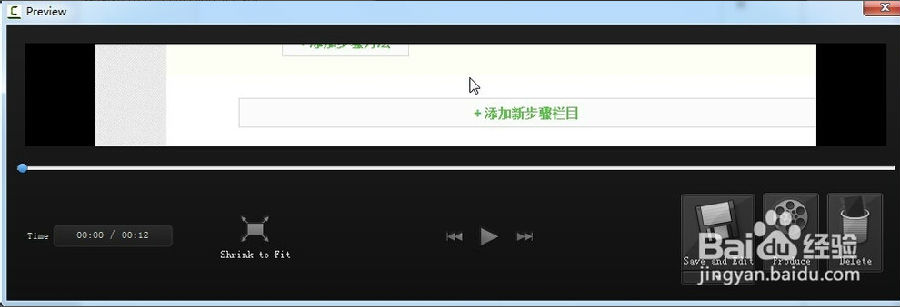 3、停止后,会出现如下预览界面,可以看到有三个选项,保存编辑,生成和删除。选择save and edit后,我们可以在camtasia studio8 中对录制的视屏进行编辑。