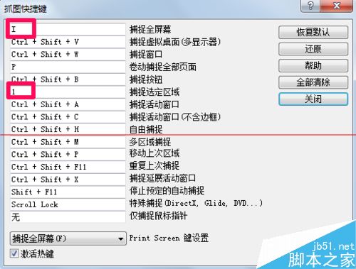 4、鼠标左键点击捕捉功能左边的输入框,然后直接按键盘上的按键就快捷键就设置成功了,多键组合就一起将几个按键按住就可以了。
